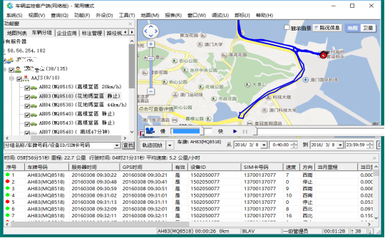 系統(tǒng)可將被監(jiān)控車輛或設(shè)備的運行軌跡自動記錄下來,選定某車某時間段的位置記錄進(jìn)行軌跡回放,為事后的分析或處理糾紛提供可靠的證據(jù)。